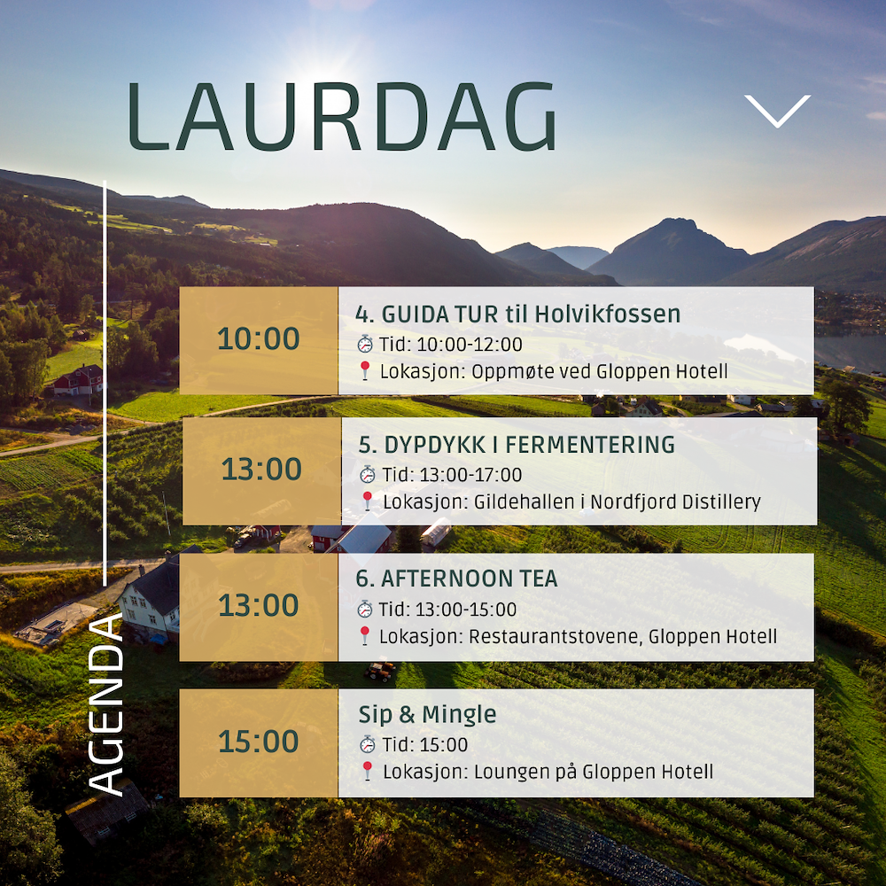 Lokal Gløppar guidar dykk opp i Trivselsskogen, gjennom kjærlighetsskogen og opp til Holvikfossen. Ved dagsturhytta blir det ein drikkepause med eit glas Frisider. Dette er ein frisk måte å starte dagen på! Forbehold om endringer ut ifrå værforhold.
